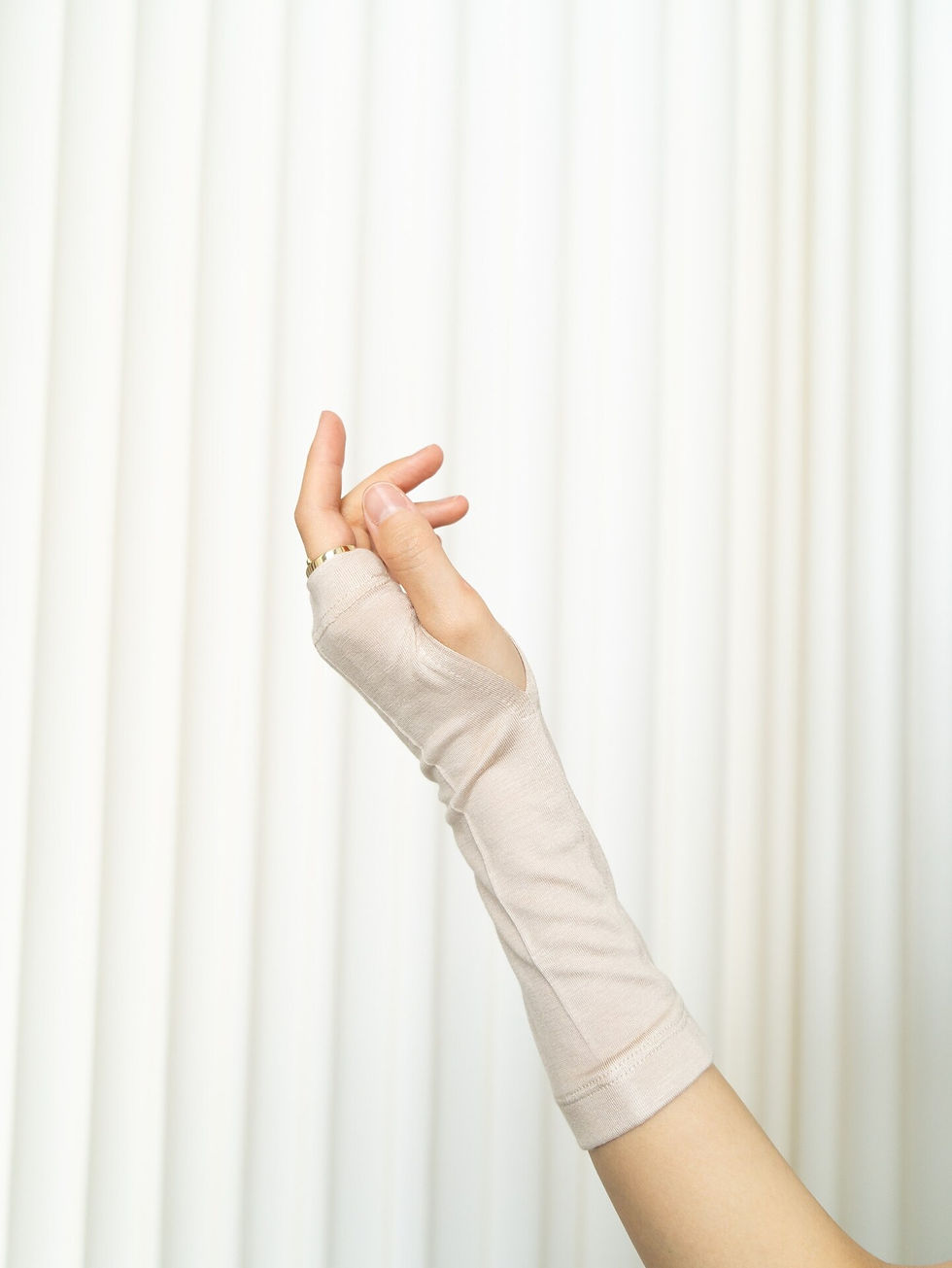 Bej Uzun Lastikli Parmak Geçmeli Kolluk