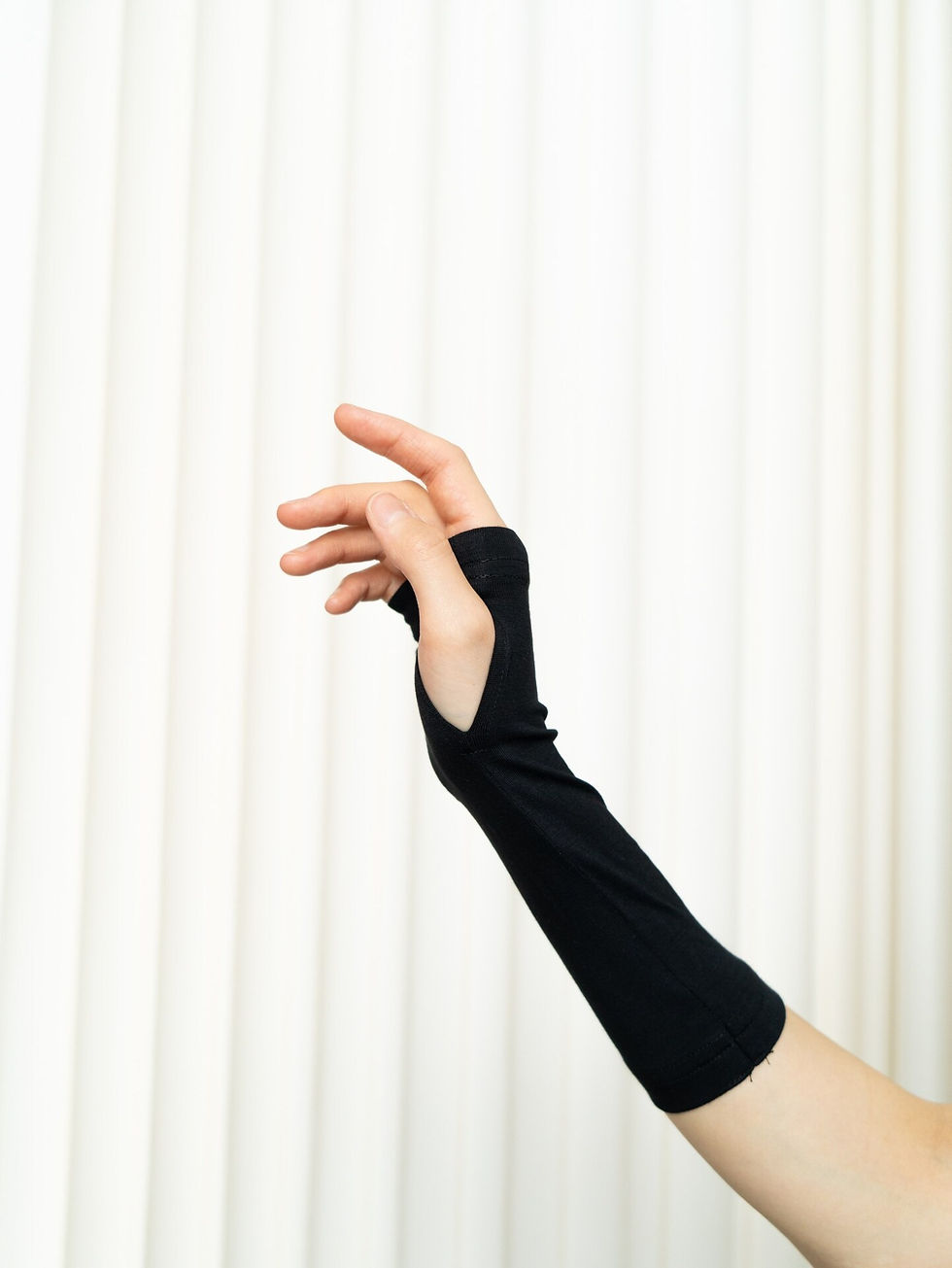 Siyah Kısa Lastikli Parmak Geçmeli Kolluk
