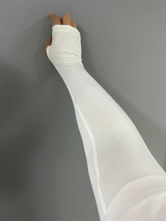 Beyaz Uzun Lastikli Parmak Geçmeli Kolluk