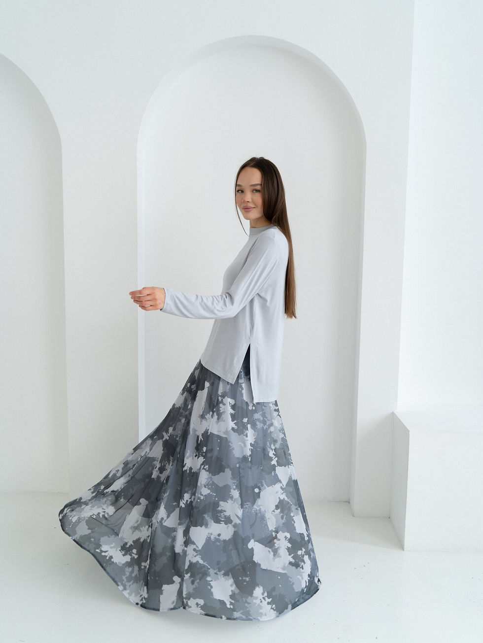Gri İzel Tül Etek